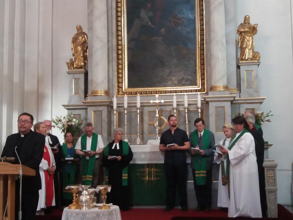 A konferencia lehetőséget nyújtott arra, hogy a résztvevők megismerjék a román ortodox, az anglikán, a metodista és az evangélikus istentiszteleti rendet is. Kedden, 23-án anglikán-metodista, majd 26-án pénteken evangélikus istentiszteleten, mindkétszer az evangélikus templomban, felekezeti hovatartozásra való tekintet nélkül közösen vehettük magunkhoz Krisztus Urunk testét és vérét. Ezek a percek olyan mozzanatai voltak a konferenciának, amelyek talán a leginkább kifejezik célját és értékét. Megélhettük a teljes egységet a Krisztushoz való tartozásban, mondanunk sem kell, hogy különösen a második alkalommal. A vasárnapi misén azonban a más felekezetűek „csak” áldásban részesülhettek.