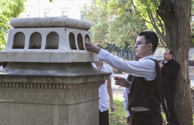 Seidl Ambrus plébános beszéde után az ünnepséget a városközpont-rehab által körbezárt 48-as emlékműnél koszorúzás zárta, ahol dr. Zima János tárogatószóval várta az emlékezők csoportját.