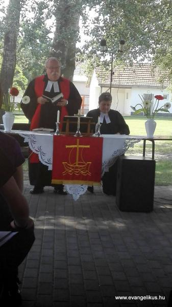 Szombaton, a 10 órakor kezdődött szabadtéri istentiszteleten Lupták György, Bács-Kiskun Egyházmegye esperese, a Déli Egyházkerület püspökhelyettese hirdette Isten igéjét, a 125 évvel ezelőtt, a templomszentelésen is elhangzott Efezus 4, 14-16 alapján. A liturgiai szolgálatot a helyi lelkész, Nagy Veronika végezte, aki örömének adott hangot köszöntőjében amiatt, hogy az ünnepelt templom üres maradt, hiszen annyi résztvevője volt az ünnepségnek, hogy azt a község rendezvényterületén kellett megtartani.