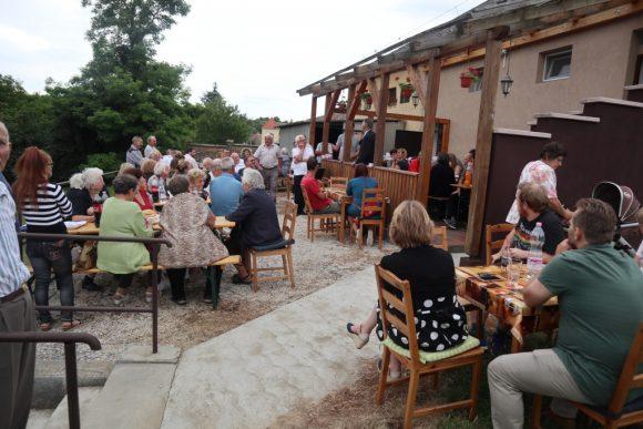 A templomi alkalom után már megterített asztalok várták a több, mint hetven résztvevőt. A helyi gyülekezet tagjai birkapörköltet, valamint babgulyást készítettek és sor került a játékos borversenyre Stikl Miklós presbiter vezetésével. 13 palack várta, hogy véleményt mondjanak róla a szakértők és a résztvevő vendégek. Örömmel fogalmazta meg a zsűri elnöke, Smidéliusz Zoltán, hogy remek borok és ügyes szőlősgazdák jellemzik a kóstolás alapján a Kaposvár környéki evangélikus településeket.
