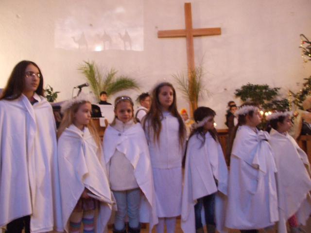 Éjfélkor aztán a Viadana-kórus énekelt a zenés áhítaton. Kisapostagon is volt betlehemes, vers és ének, majd december 25-én a baptista templomban szintén zenélt a Neopolis együttes.