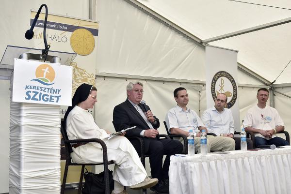 A negyedik és egyben utolsó beszélgetésen a média különböző területein dolgozó szakemberek vettek részt (Szőnyi Szilárd, a Heti Válasz főszerkesztő-helyettese, Erhardt Ágoston, az MTVA Vallási főszerkesztőségének vezető szerkesztője, Martí Zoltán, a 777.hu blog alapító-főszerkesztője, Kiss Ulrich jezsuita szerzetes, valamint Major Péter, a Shoeshine videóblog rovatvezetője). A sablonosságot kerülő válaszadók, többször is érintették az őszinteség, a szókimondás, a hitelesség kérdését, illetve hogy hogyan lehet a keresztény értékeket megjeleníteni a nyilvánosságban a mai médiaviszonyok között. Érdekesség, hogy a kerekasztal két résztvevőjének is a közelmúltban jelent meg új könyve: Kiss Ulrich Szolgáló vezető a tanuló vállalkozásban című kötetét és Szőnyi Szilárd Föltámadott a gender című könyvét is meg lehetett vásárolni a Keresztény Sziget könyvárusító standján, és a szerzők dedikálásra is szívesen vállalkoztak.