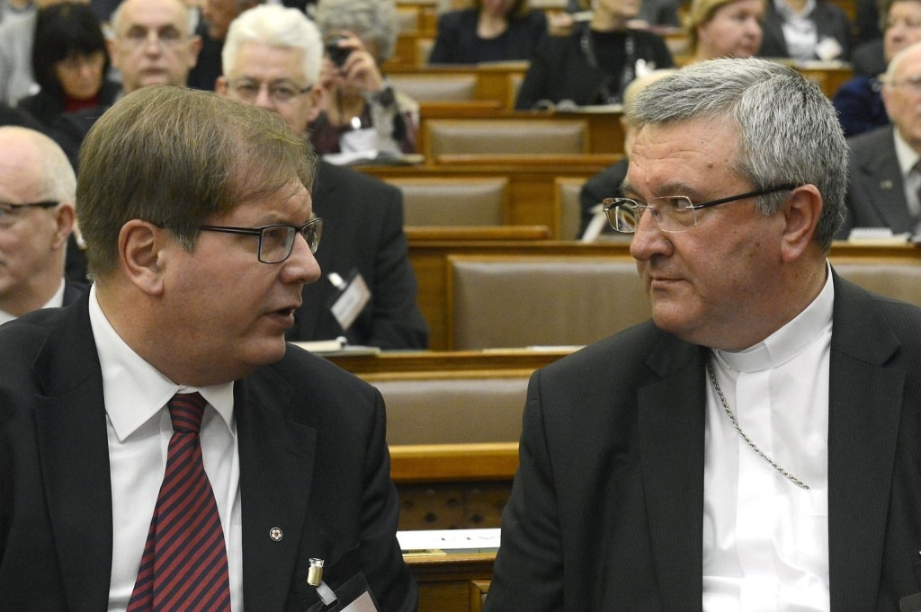 Az Országgyűlés Hivatalának Közgyűjteményi és Közművelődési Igazgatósága és a Nemzeti Emlékezet Bizottsága (NEB) közös tanácskozásának megnyitó beszédét Kövér László, az Országgyűlés elnöke, a rendezvény fővédnöke mondta. Akik Isten halálát hirdetik, mindig készen állnak az emberi élet kioltására is. A kommunista ideológia egyik elsőrendű feladatának tartotta az Egyház és a vallás megsemmisítését. A diktatúra célja ugyanis az identitás nélküli ember létrehozása volt. Kövér László emlékeztetett arra, hogy akikre ma emlékezünk, nem féltek hitük megvallásáért elszenvedni az üldöztetést és segítették a lelki túlélést egy istentelen politikai rendszerben.