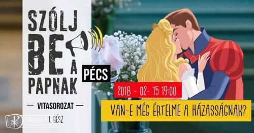 Valentin-nap után, február 15-én 19 órától levezetésképpen gyere el a pécsi Szenes Klubba, és beszélgessünk a házasságról! Ha már készülsz rá, ha még gondolni sem tudsz rá, ha már túl vagy rajta: itt a helyed!