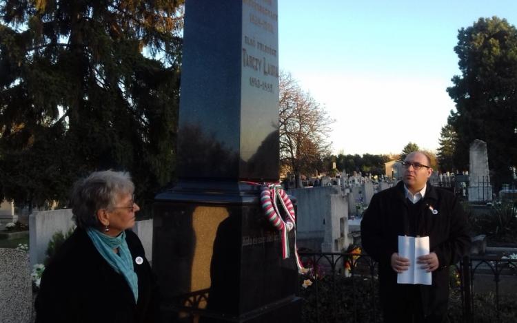 A rövid, tisztelgő főhajtáson az EpVE ügyvivője, Kerecsényi Zoltán városi képviselő tartott beszédet, ismertetve a néhai neves ’48-as életét a megjelenteknek.