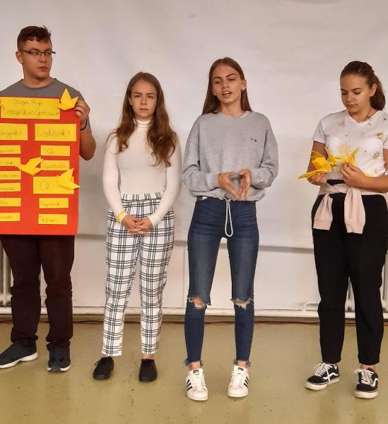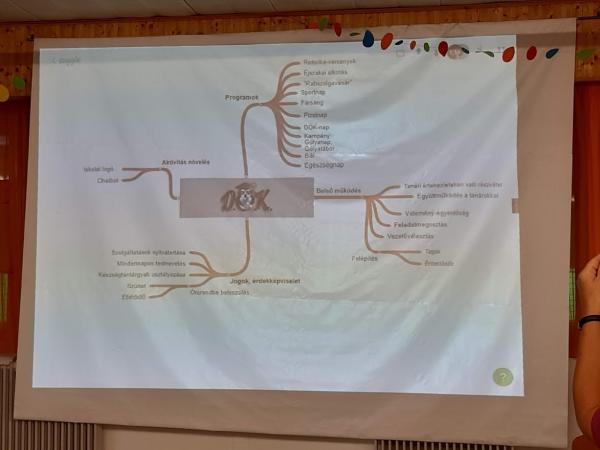 Reggeli után a csapatok bemutatták csoportmunkájuk „eredményét”. Láthattuk, milyen lehet és milyen legyen a jövő gimnáziuma (makett), vagy milyen lenne az ideális iskola közösségi élete, programjai, tanrendje (gondolattérkép). Megint mások „elrappelték” iskolai élettel kapcsolatos kívánságaikat és vágyaikat.