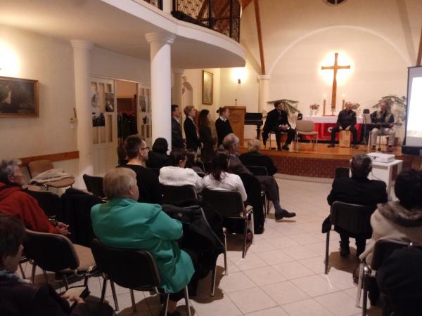 Az evangélikus gyülekezet énekkarának szolgálatával kezdődött az alkalom, melyet ezúttal is Antal Gusztávné vezényelt. Luther eredeti dallamával és német szövegével énekelték a reformáció himnuszát.